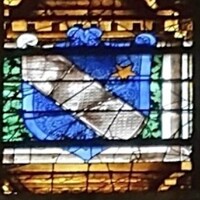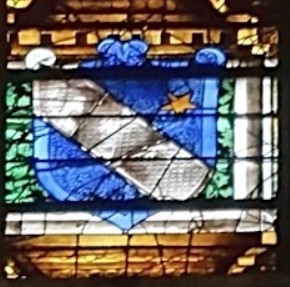 On trouve des armoiries très proches sur le vitrail de la cathédrale et sur les fermoirs de la bible d'Hugo Mathié, d'azur à la bande d'argent avec une étoile d'or en chef, mais celles de la bible portent trois merlettes de sable sur la sable, alors que le vitrail ne les montre pas.
