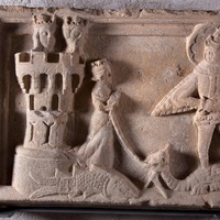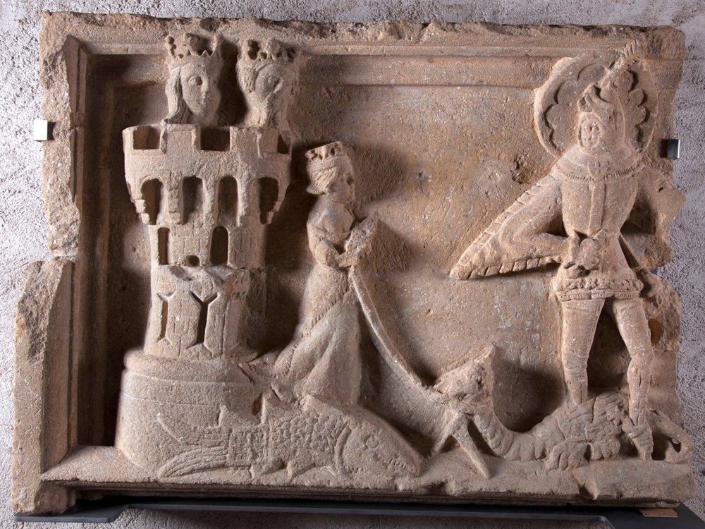 Ce relief représente saint Georges victorieux, debout sur un dragon, libérant une princesse offerte en sacrifice à la bête qui menaçait la ville de Trébizonde. Derrière la princesse apparaît la tour d’un château où se trouve un couple royal qui observe la scène. Aux pieds de la princesse et de la tour est sculpté un gros poisson dont la présence interroge : s'agit-il de situer la scène au bord de la mer ?