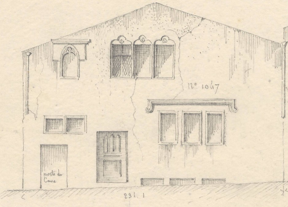 En 1790, elle comprend encore plusieurs éléments anciens visibles. Au premier étage, une corniche Renaissance surmontait au-dessus d'une galerie de trois fenêtres. Au deuxième étage, une autre galerie de trois fenêtres était surmontée de tympans trilobés eux-mêmes ornés de petits quadrilobes. Une autre fenêtre à ogive, à l'extrémité gauche, est surmontée par une corniche.
