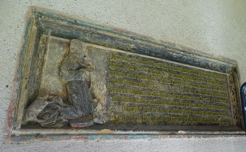 Traduction : « Ci-gît damoiselle Linon des Armoises, jadis femme de Jean de Viller, l'aman, seigneur de Sorbey et fille de Didier des Armoises écuyer, seigneur de Neuville-sur-Ornain et de damoiselle Jeanne d'Angy, conjoints, pour le salut de laquelle damoiselle Linon, le dit Jean son mari, à l'honneur et révérence de la conception de la très sacrée vierge Marie, a ordonné d'entretenir cette présente lampe ardente sur sa tombe avec plusieurs autres services annuels en cette chapelle. Et décéda le neuvième jour de mars, l'an de grâce notre seigneur M. Vc. II. Dieu fasse merci à son âme. Amen. »