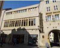Grande maison de Jurue puis maison du Doyen L'histoire de ce bâtiment connu comme l'ancien hôtel de la famille de la Court connaît une trajectoire mouvementée aux XIVe et XVe siècle. La famille de la Court est un lignage messin qui est particulièrement lié au paraige de Jurue. En effet, en 1267, Jean de la Court (†1288) y possède 5 maisons localisés devant la cour de Sainte-Croix en Jurue. La maison qu'on désigne comme la « Grande maison de la Place Jurue » appartient à la fin du XIIIe siècle à Guillaume de la Court, un chanoine de la cathédrale et frère de Jean. C'est dans cet hôtel praticien qu'un autel dédié à sainte Catherine est fondé par Poince Ruèce, veuve de Nicolle de la Court (neveu de Guillaume) et par Alixette sa fille. L'autel est par la suite transféré à une date inconnue avant 1344 à l'église Sainte-Croix. Elles fondent également en 1321 l'hôpital Pontiffroy. La maison paraît ensuite avoir passé à Amiette de la Court, fille de Nicolle et de Poince, puis en dot à son époux Jean Le Hungre. Lors du partage des biens de Jean Le Hungre en 1337 par sa veuve Amiette et par son frère Jean de la Court, la « Grand maison que fut Willame de la Court sur la Place en Jurue » passe finalement aux mains de Guillaume Le Hungre, fils d'Amiette et de Jean. On perd ensuite la trace des propriétaires de la maison pendant près d'un siècle. Avant 1440, la cité l'achète et la transforme pour abriter l'administration des impôts. Cette acquisition s'inscrit dans une suite d'achats par la ville pour installer différentes commissions spécialisées, comme les Sept de la Maletôte qui ne peut plus œuvrer au Palais des Treize faute d'espace. À partir de 1379, ils travaillent dans une maison en location. Quelques années plus tard, la ville décide d'acquérir finalement les maisons et bâtiments dans lesquels les différentes septeries sont installées. C'est ce qui semble avoir été le cas pour la « Grande maison de Jurue » selon Pierre-Édouard Wagner. On l'appelle désormais l'hôtel de la Bulette, car c'est là que sont rédigés les contrats concernant les propriétés : à la fin de la rédaction de chaque acte, une gouttelette de cire (nommée bulette), servait alors de validation. Mais la maison abrite aussi les services de l’enregistrement de la maltôte, un impôt extraordinaire, qui s'appliquait à des biens de consommation courante, vin, bière, cire... L’hôtel de la Bulette est aussi, plus souvent, appelé « la maison du Doyen », ou encore « la Maison de la Ville », « la maison des prisonniers ». En effet, les magistrats s’étaient réservé l’utilisation des caves ; une partie est aménagée en prison accueillant le plus souvent des prisonniers de guerre, placés sous la garde d’un « doyen des prisonniers » ; ce poste de concierge étant généralement confié au doyen des sergents des Treize. L’hôtel devient définitivement une prison en 1507 et le reste jusqu'en 1792. En 1931-1934, le bâtiment est démoli pour laisser place à l’hôpital Sainte-Croix. Seule la porte à bossages baroques est conservée et remontée rue des Récollets. La façade que l’on voit aujourd’hui est une réplique de la façade médiévale -
